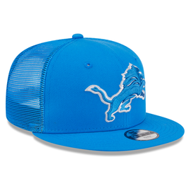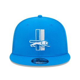 Stand out on game day with the Detroit Lions New Era Banner A-Frame 9FIFTY Trucker Snapback Hat in chrome blue. Featuring a bold embroidered logo, printed wordmark, and breathable mesh panels, this structured snapback delivers comfort and style that every Lions fan will love.