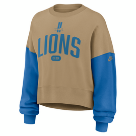Show off a vintage Lions look with the Nike Swing Pass Rewind Club Pullover Sweatshirt. This tan crewneck features a bold Detroit Lions helmet applique on the chest for a premium, throwback feel. Made with midweight fabric, it’s ideal for cooler weather and easy layering on game day or any casual outing.