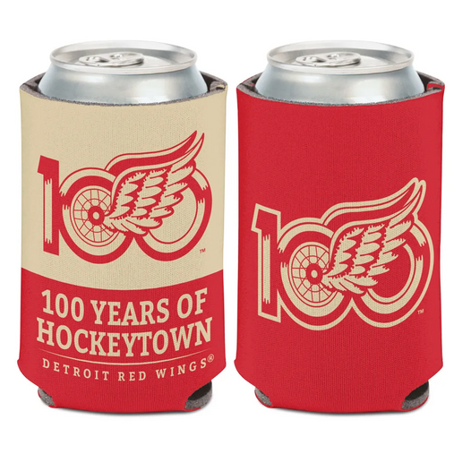 Keep your drink cold while honoring a historic season with the Detroit Red Wings WinCraft Centennial Can Cooler. Made from durable neoprene and finished with sharp sublimated graphics, this fold-flat can cooler is perfect for game days, watch parties, or everyday use.