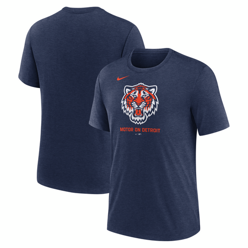 Show off your Tigers pride in everyday style with the Detroit Tigers Nike Alternate Logo Tri-Blend T-Shirt in heather navy. Crafted from a soft tri-blend fabric, this standard-fit tee features a screen-printed alternate team logo on the chest for a bold, classic look. Perfect for game day or casual wear, it delivers comfort and timeless Tigers style all season long.